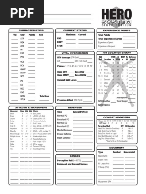 Hero System 6th - Advanced Players Guidepdf. Hero System 6th - Equipment Guidepdf. The layout is on A4 pages but the margins should be deep enough to print without any problems on US Letter paper.